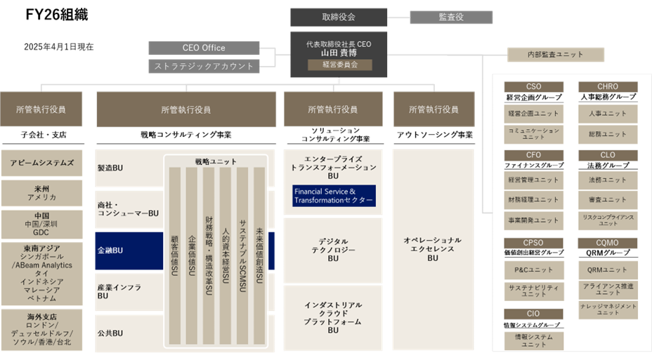そのなかで、金融BUは戦略コンサルティング事業に属しており