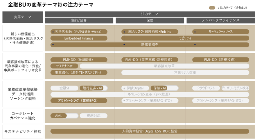 また、金融BUでは大きく以下5つの変革テーマを掲げています。