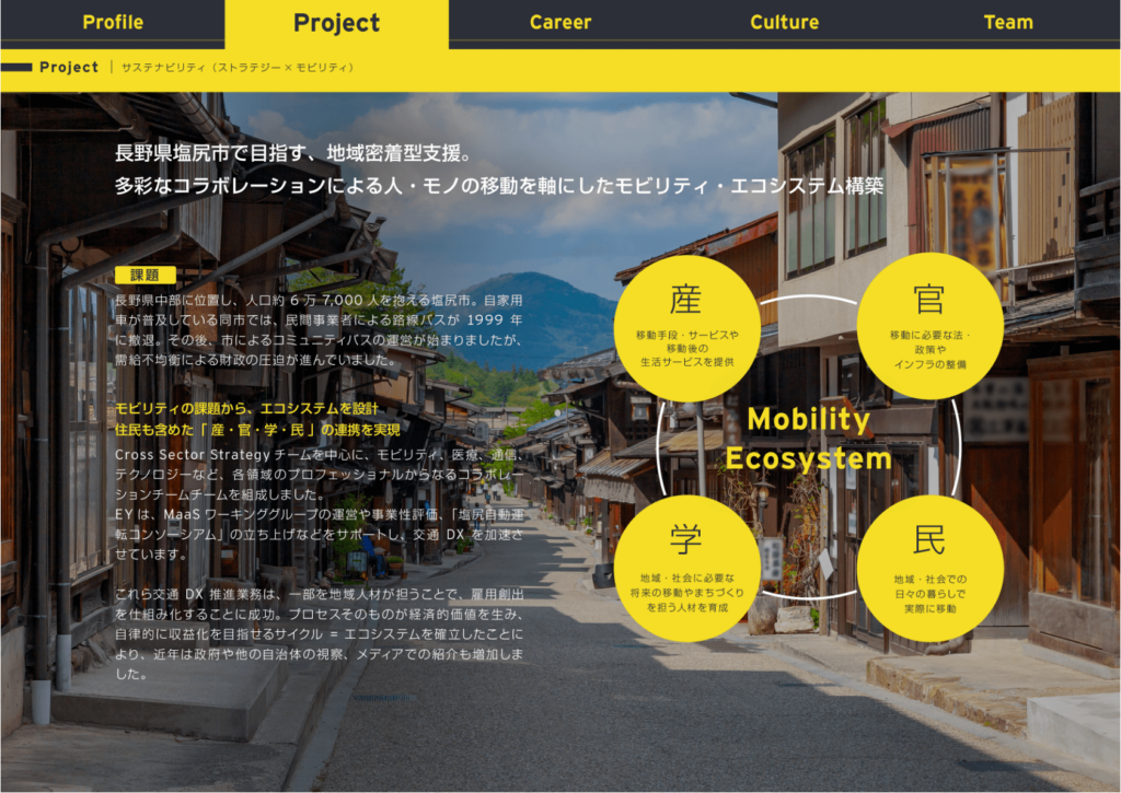 地方創生や官民連携を進めるための取り組みである「EY知恵のプラットフォーム」責任者も務める。