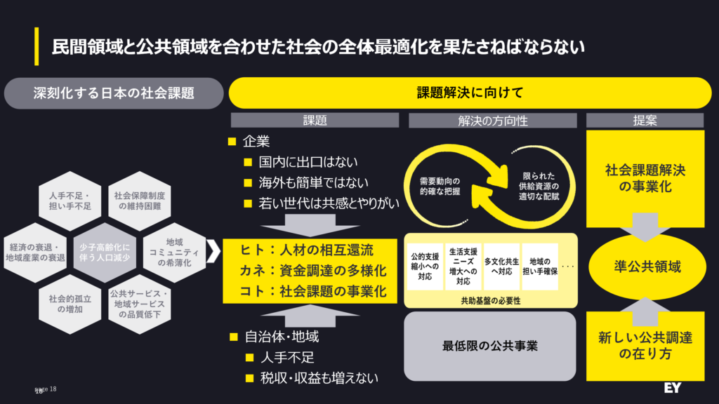 民間だけでも行政だけでも解決できない課題を視野に入れ、従来の枠組みを超えたアプローチで全体最適化を追求する。そこにEYSCの強みがあると理解してよろしいですか?