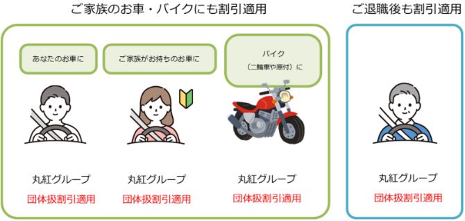 丸紅、丸紅グループ社員の皆さまは、大口団体扱割引を適用したご契約が可能です。また、退職された後も大口団体扱割引を引き継ぎで同条件のままご利用いただけます。